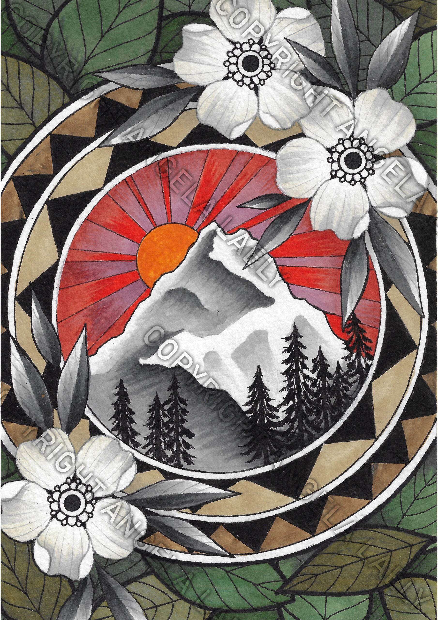 Multiliner und Alkoholmarker auf Aquarellpapier