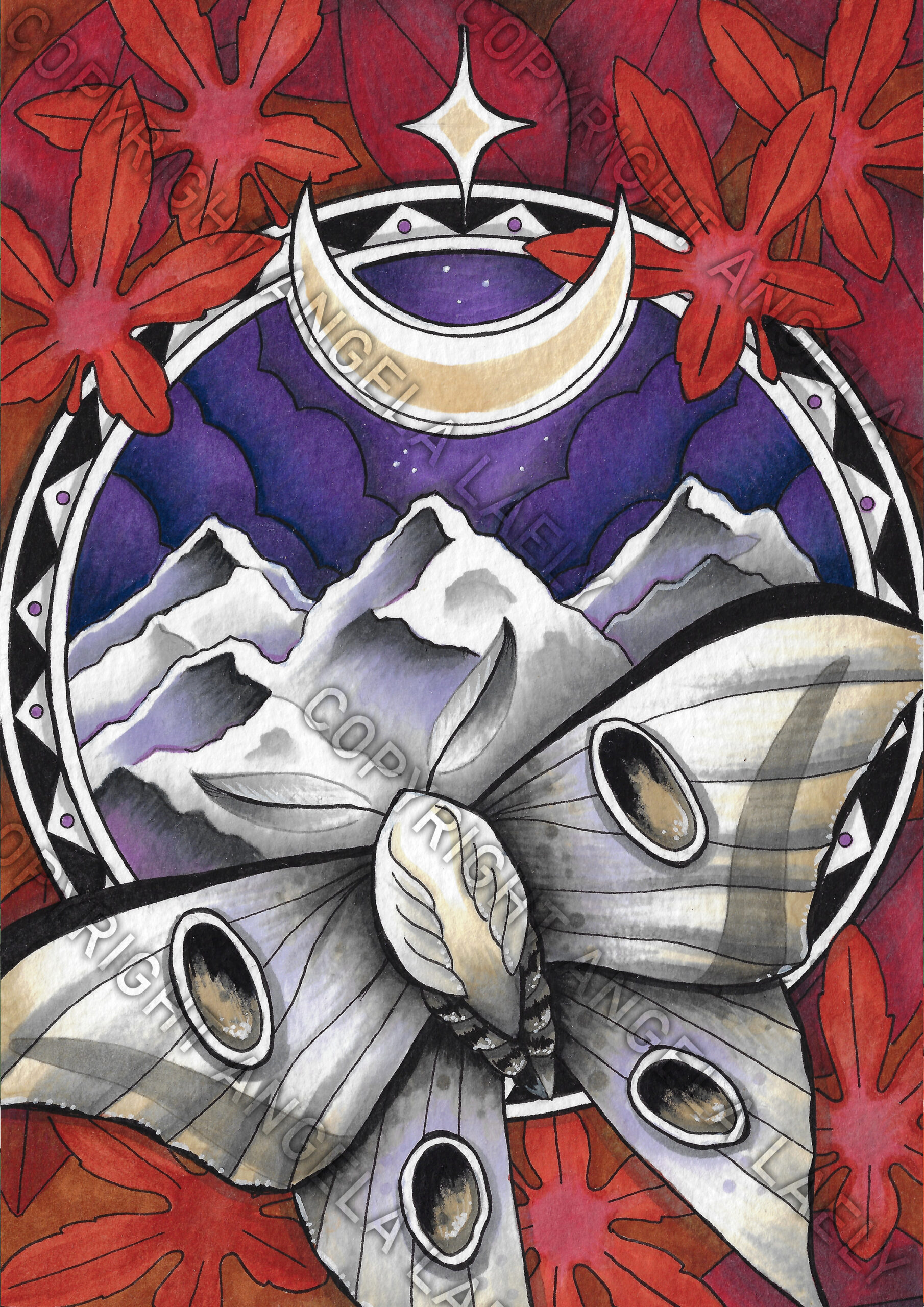 Multiliner und Alkoholmarker auf Aquarellpapier